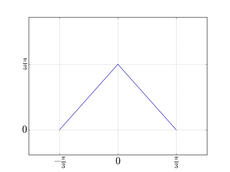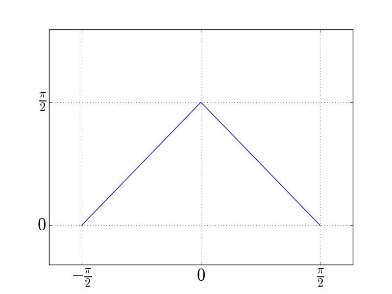 \D \frac{\pi}{2}-|x|, & \D \frac{-\pi}{2} \le x \le \D \frac{\pi}{2} \\