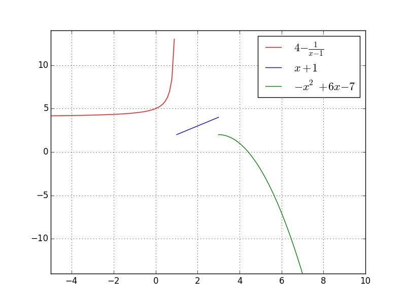 x+1 &~\text{ für }~ 1\le x\le 3\\