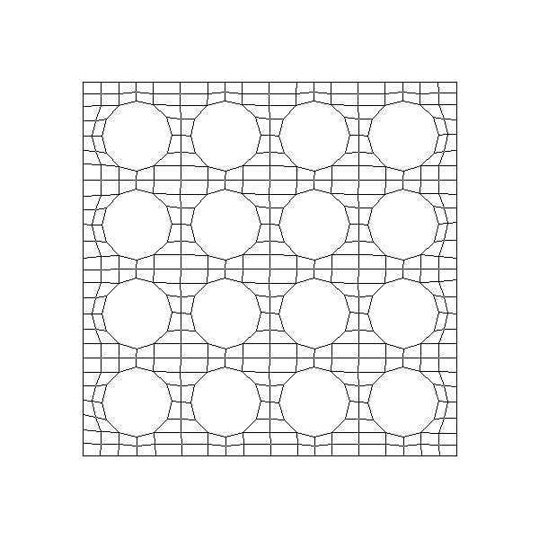 16 heated circle of radius 0.375 located first circle at x = 0.8,y